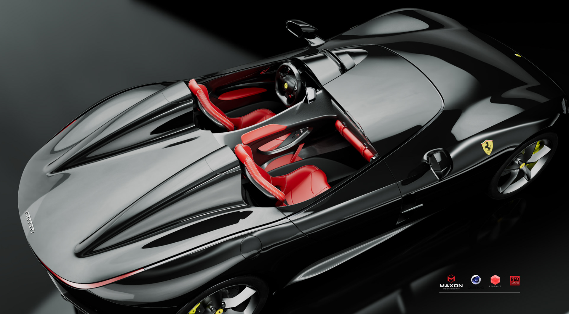 Project Ferrari Monza SP2: Exploration with color, lighting, and composition. Tools used: C4D Maxon, RedShift Renderer, plus Red-Giant Looks for post work via RedShift's renderer.